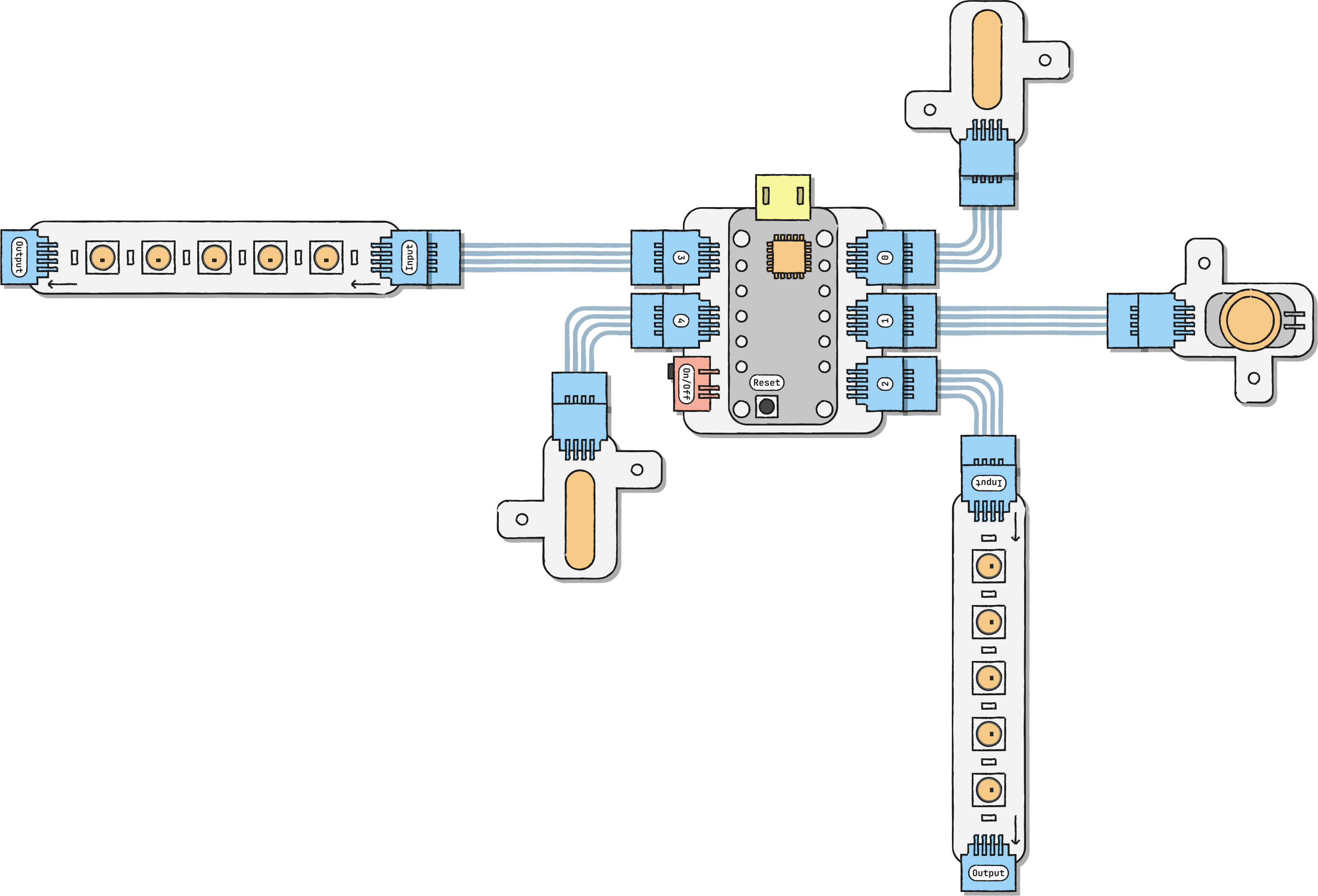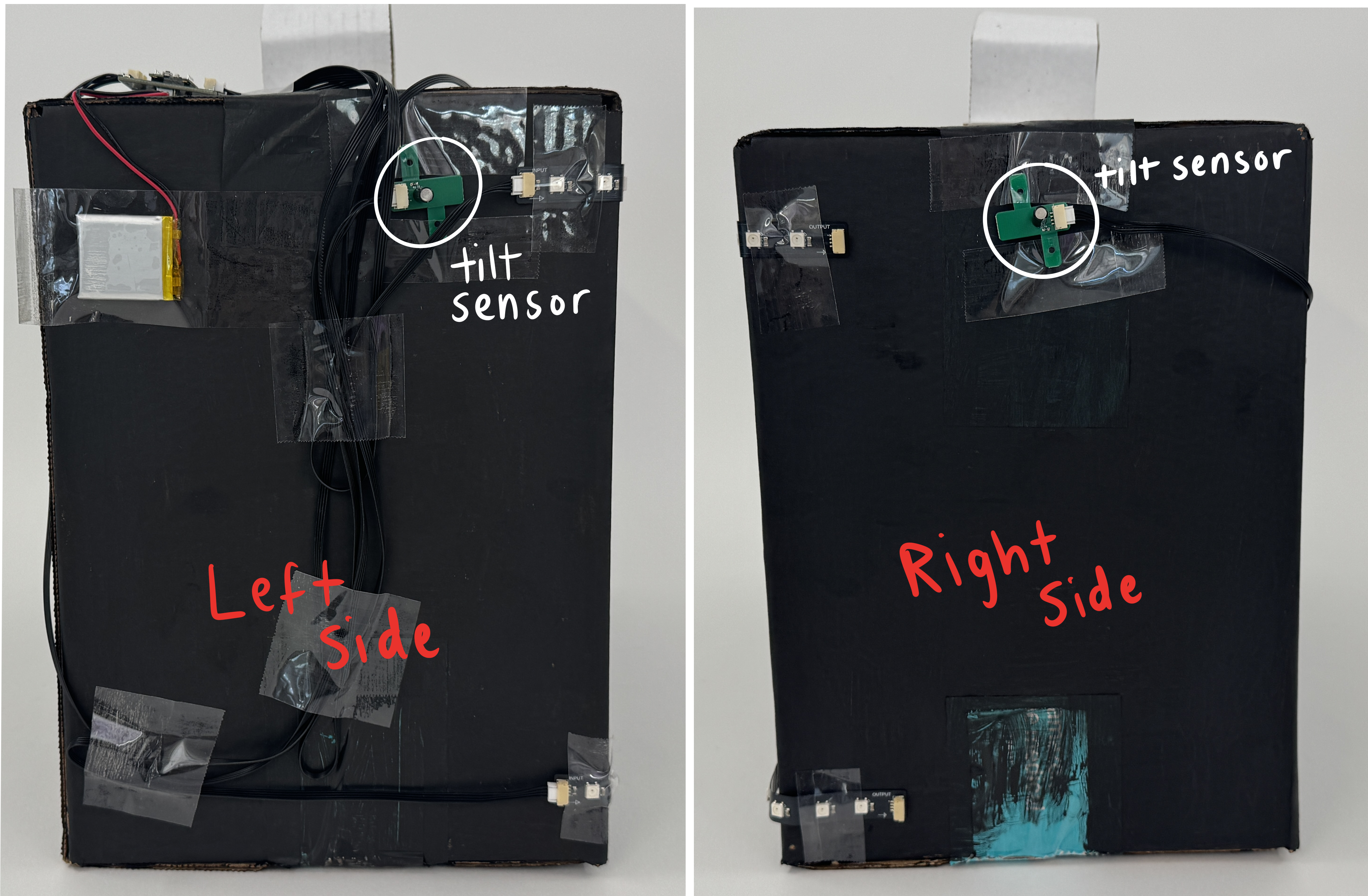 The dancers placed the tilt sensors on either side of the box, each triggering a different animation when the box sways in the side-to-side direction