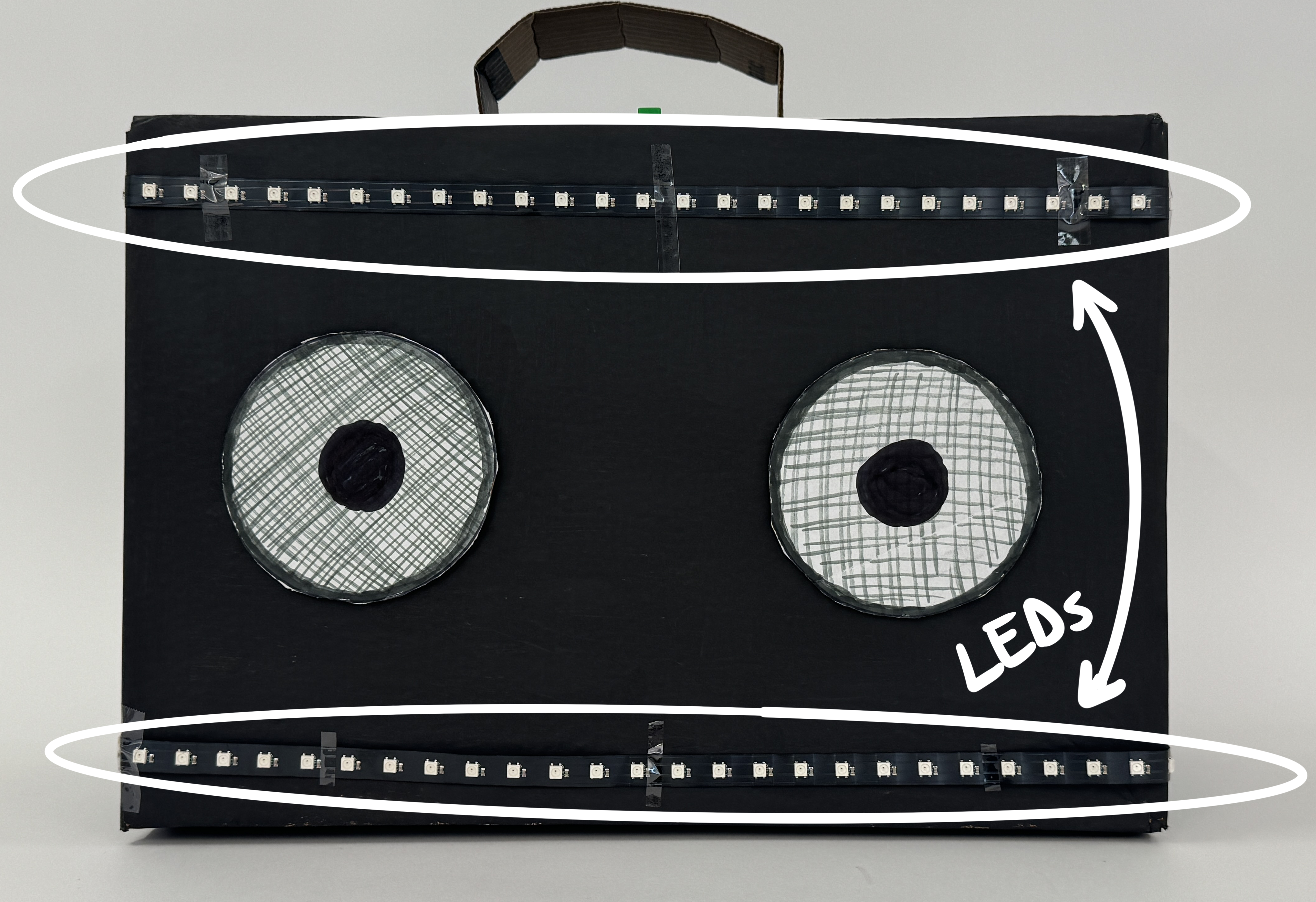 The dancers placed the LED Strips in a straight line along the top and bottom of the front of the box.