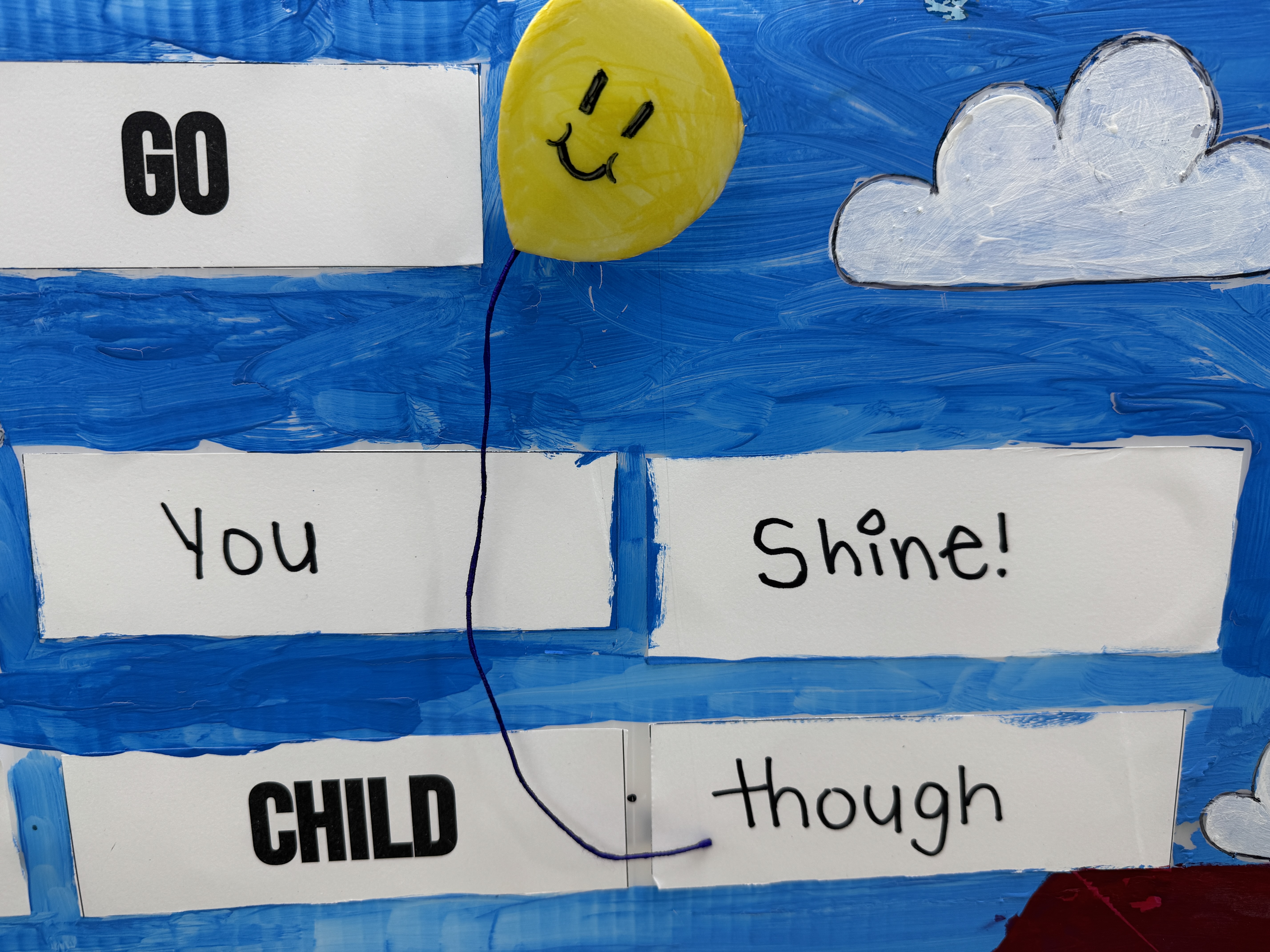 Artists covered the button with foam and decorated it to look like a balloon with a smiley face, fitting the themes of childhood and nostalgia.